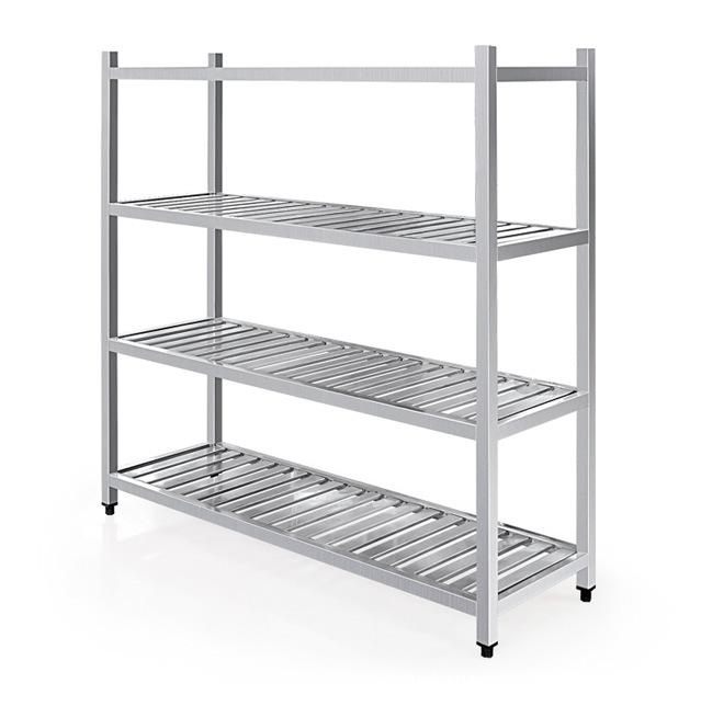 簡介—— 四層平板貨架/菜架系列產(chǎn)品特性1.優(yōu)質(zhì)的不銹鋼板材,可選用201#、304#兩種;2.底部采用不銹鋼槽做加力筋,經(jīng)久耐用